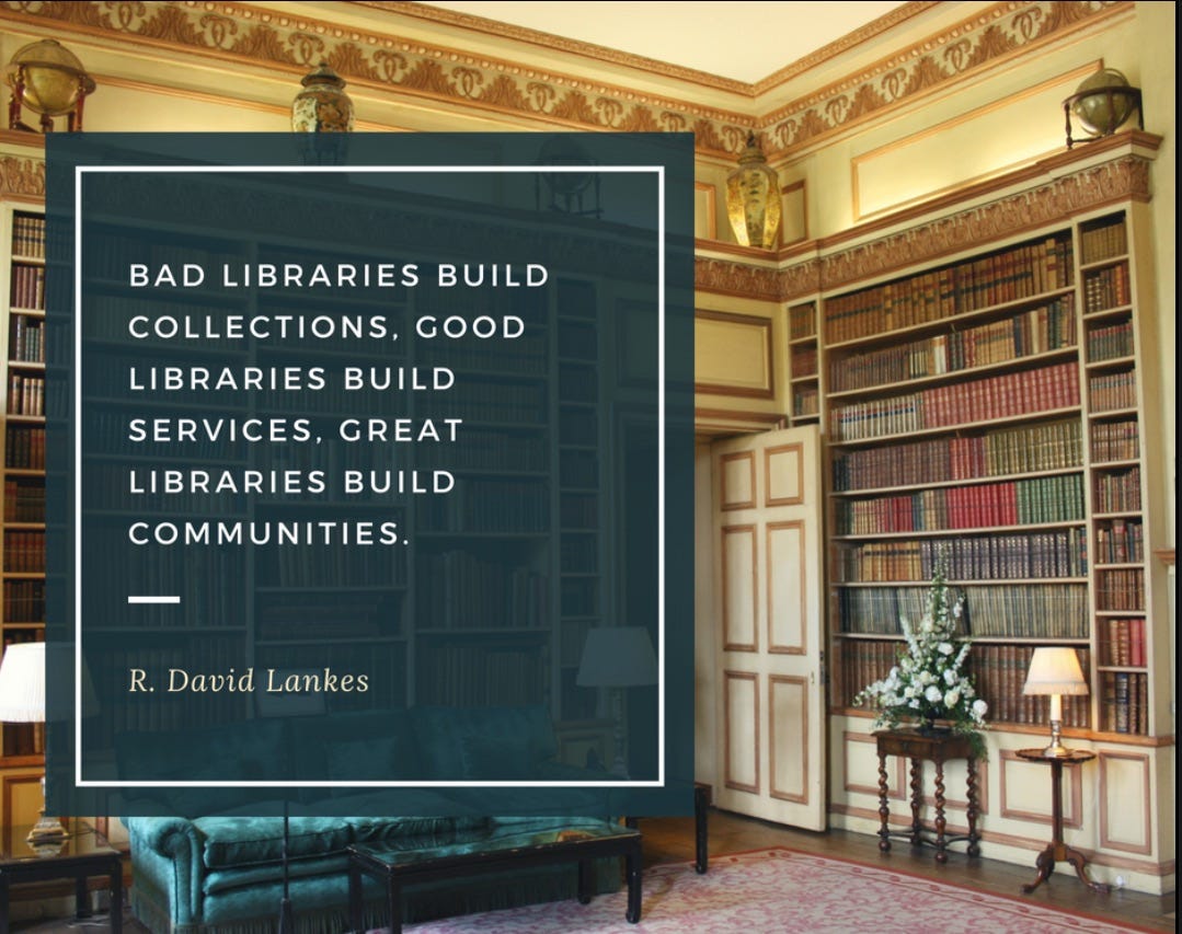 It may be overly simplistic to apply this logic to our inner libraries, but it makes sense to think of ourselves this way. We are more than just the collection of the books, music, experiences and ideas that make us. Those things live through us as resources, and when we use what we’ve learned and experienced to build communities it’s as though we open the doors to our inner libraries and invite each other in.